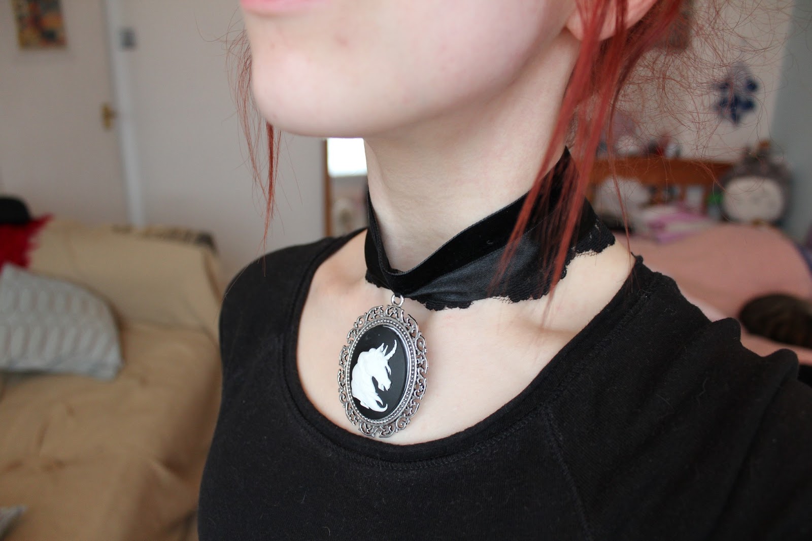On Thursday the 28th February, I ordered a gothic style choker with a unicorn cameo, from a delightful little independent online shop called Vae Nox. I came across Vae Nox on Tumblr and was amazed by how intricate and unique some of her products were. I messaged her, and she was happy to work with me in doing this review! She immediately offered me discount on a product of my choice, which I thought was really very generous. I picked the product that I liked the most, but there was a slight problem (due to me being so darn picky)! I didn't want the actual choker part to be purple and black because I own no purple clothes, and my intent is to actually wear this item of jewellery! (Funnily enough). So upon explaining this slight predicament, she seemed very keen to help and explained that she had a plain black choker in a slightly different material and that she would be more than happy to personalise the product for me! I accepted and within an hour and a half, a message popped up with two photos of my personalised product. She then linked me to her Etsy store where I had my own listing and coupon code for the product. I bought the product and she notified me that she had received my payment both through the formal Etsy guidelines, and through the messages we were sending on Facebook. I was told that my product would be shipped the following morning and that it may take slightly longer to arrive due to it having to make its way across from Switzerland. Excited, I thanked her profusely and awaited my package...